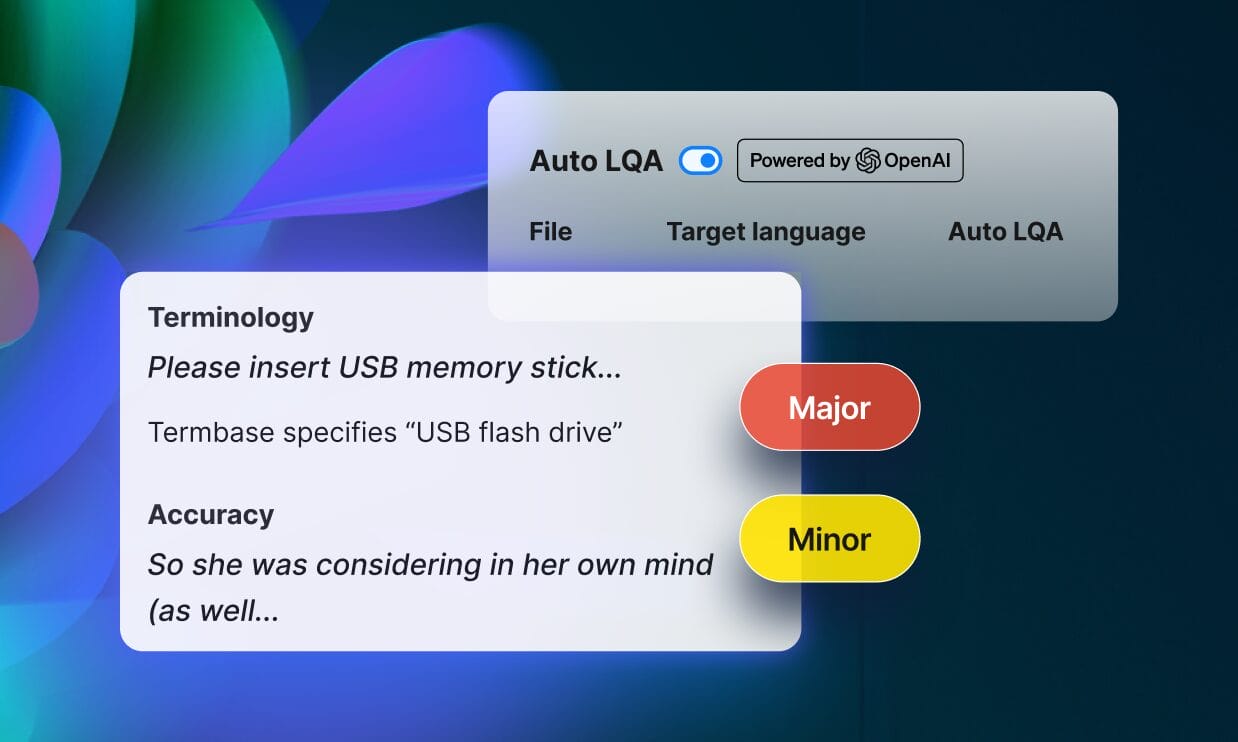 Auto LQA uses GenAI to evaluate translation quality against the MQM 2.0 framework, identifying potential errors, assigning objective scores, and delivering actionable feedback, instantly and at scale. It’s like having a tireless, data-backed QA specialist embedded directly in your workflow.