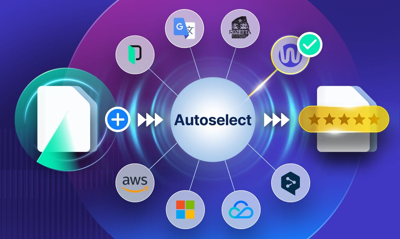 With Phrase Language AI, you get access to the power of 30+ industry leaders like Google, DeepL, Amazon, Tencent, and more. But what makes it truly intelligent is our AI-powered MT Autoselect, which evaluates real-world performance data to choose the best engine for every content type and language pair, automatically.