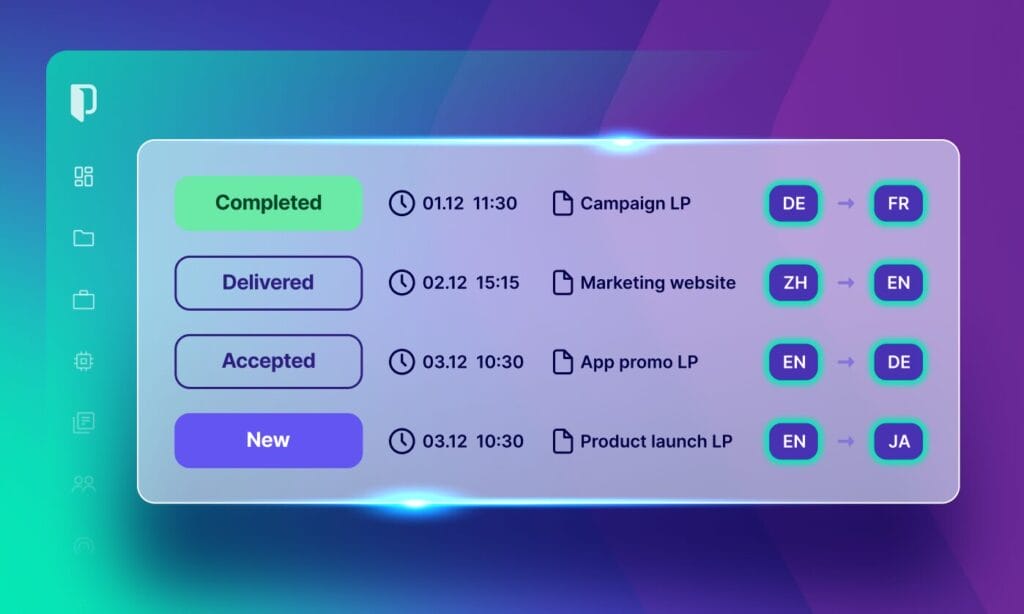 Verwalte all deine Website-Lokalisierungsprojekte an einem Ort – vom Content-Import über die Übersetzung bis zur finalen Prüfung. Phrase unterstützt die Zusammenarbeit im Team und sorgt für vollständige Transparenz