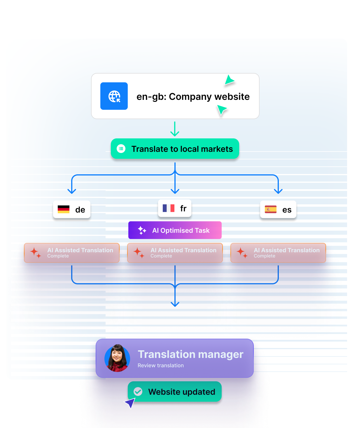 Phrase’s AI capabilities are designed to enhance your speed, increase efficiency, and maintain seamless communication for your global customers. With the Phrase Localization Platform, you can free up valuable resources and create bigger, better customer experiences in any language or location.
